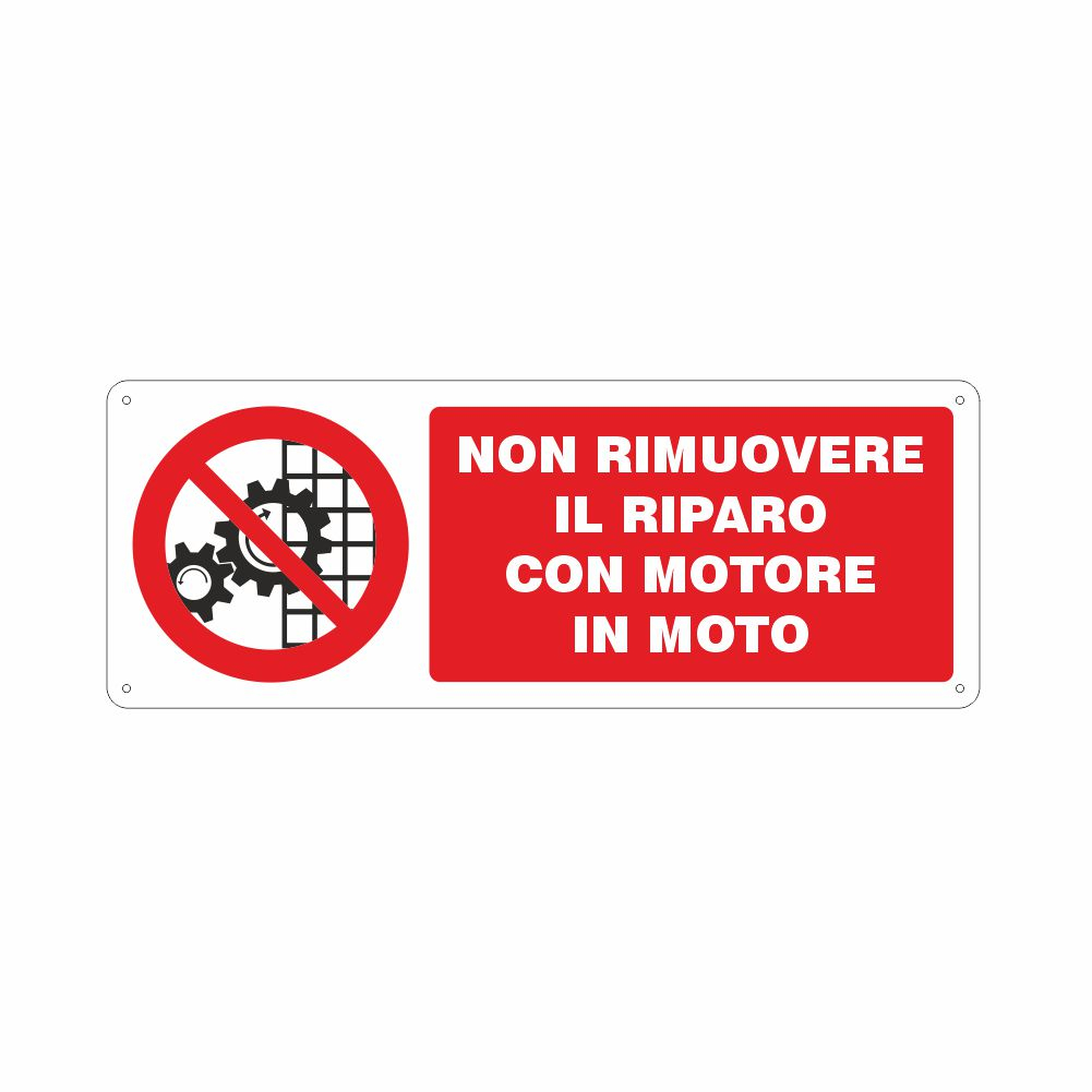 Cartello in alluminio preverniciato bianco spessore 0,5 mm, stampa serigrafica pittogramma e scritta Non aprire a macchina in moto, con fori e angoli arrotondati, imballo singolo. Conforme D.Lgs. 81-08 e UNI 7543. La dimensione del formato è espressa in mm. Scarica qui la scheda di prodotto per la segnaletica in alluminio