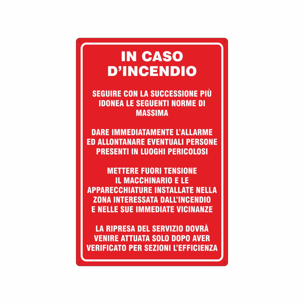 Cartello in alluminio preverniciato rosso spessore 0,5 mm, stampa serigrafica scritta Interruttore elettrico generale - usare in caso d'emergenza. Conforme D.Lgs. 81-08, UNI 7543.