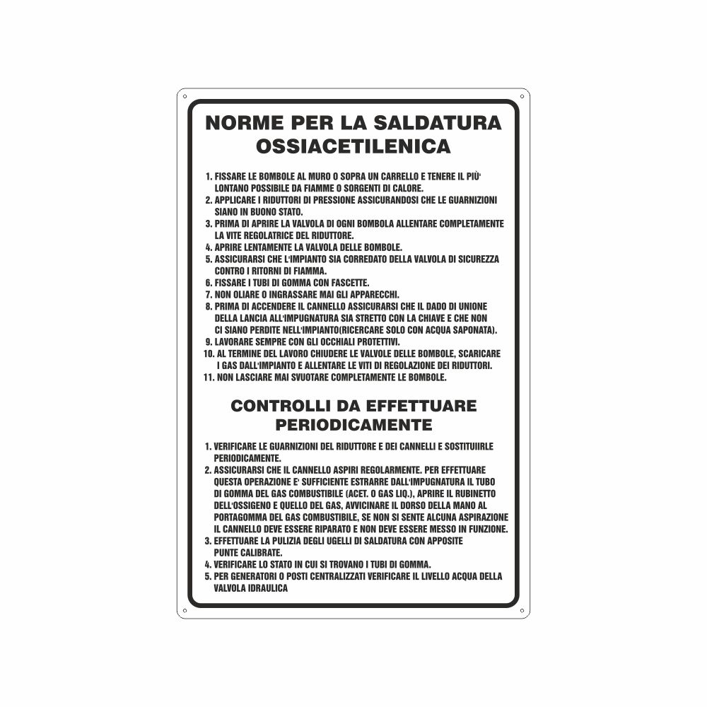Cartello è obbligatorio eseguire le saldature sotto aspirazione Cartello in alluminio preverniciato bianco spessore 0,5 mm Pittogramma e scritta è obbligatorio eseguire le saldature sotto aspirazione Stampa durevole e resistente. Angoli arrotondati. Imballo in nylon Disponibile in due formati: A con dimensione 333x125 mm; B con dimensione 333x500 mm Distanza di visibilità:Fomato A 4 metri; Formato B 12 metri Conforme D.Lgs. 81/08, UNI 7543. Utilizzo: il cartello va applicato vicino alle postazioni di saldatura per informare sull'obbligo di eseguire le saldature sotto aspirazione. L'aspirazione elimina i vapori e gli altri detriti di saldature che possono essere inspirati dall'operatore e causare possibili infortuni o malattie professionali. Metodo di adesione consigliato: collante siliconico su muro o su superficie liscia e piana