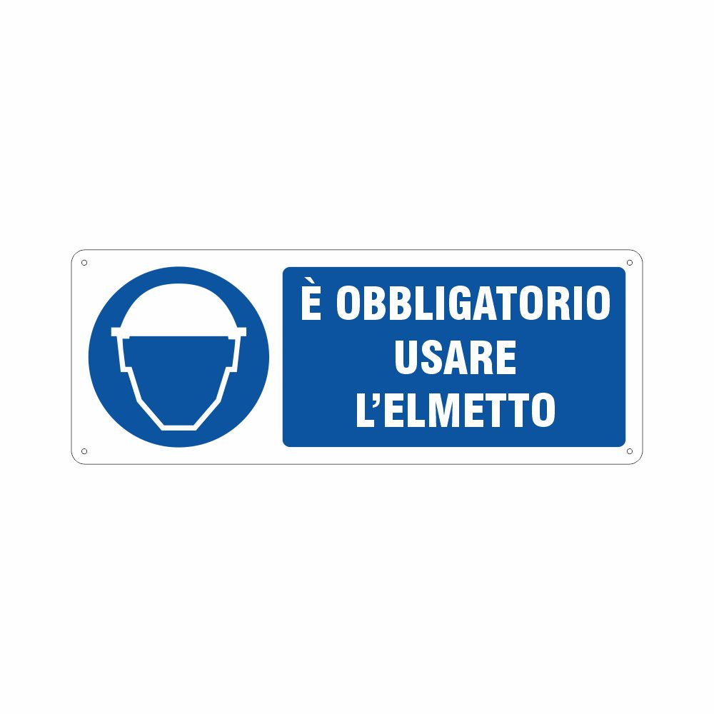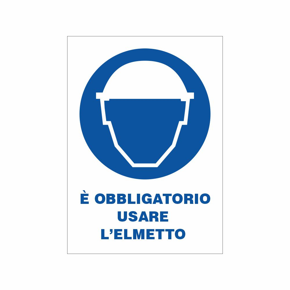 Pittogramma e scritta è Obbligatorio usare l'elmetto (o il casco protettivo)
