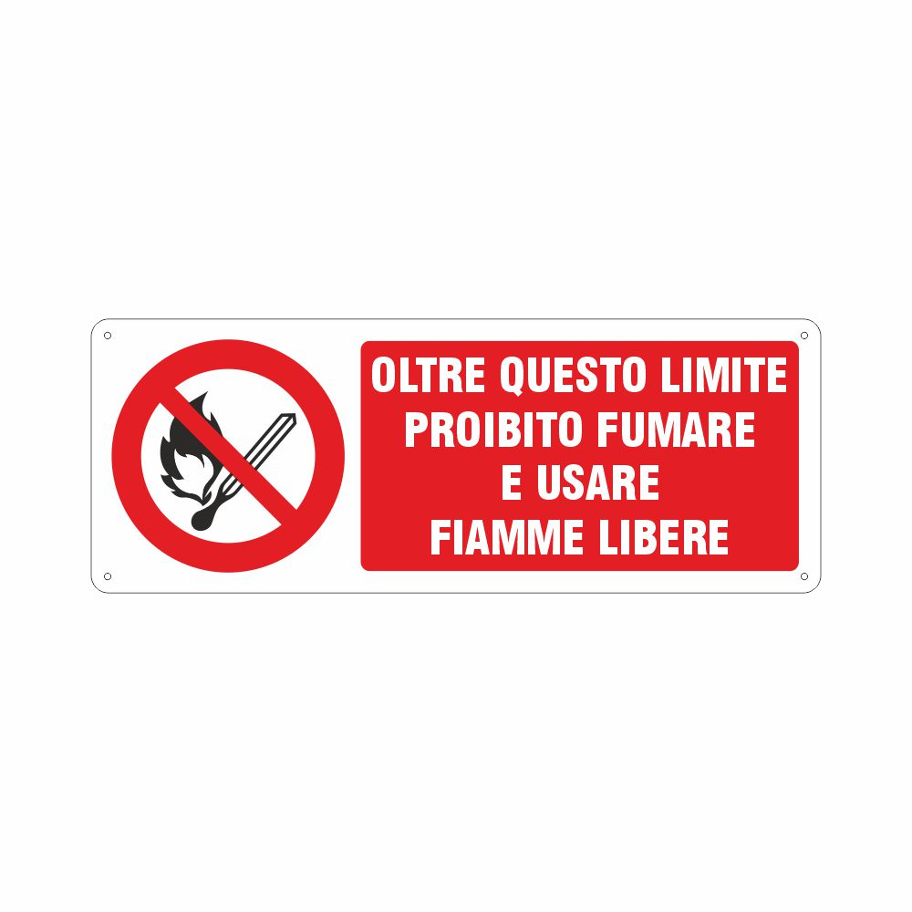 Cartello Oltre questo limite proibito Fumare e usare fiamme libere