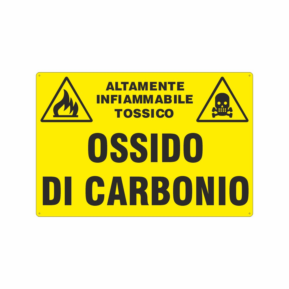 Utilizzo: il segnale si applica nelle aree di utilizzo o stoccaggio del gas pericoloso ossido di carbonio, o monossido di carbonio, altamente tossico e infiammabile. Il gas è un prodotto asfissiante che, anche in piccole quantità, può essere letale.