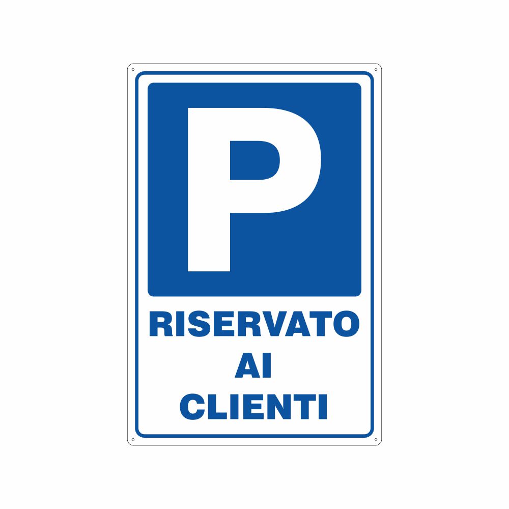 Cartello in alluminio preverniciato bianco spessore 0,5 mm, decorazione in pvc pittogramma e scritta Parcheggio clienti con freccia direzionale. Formato 1000x250 mm. Conforme D.Lgs. 81-08 e UNI 7543.