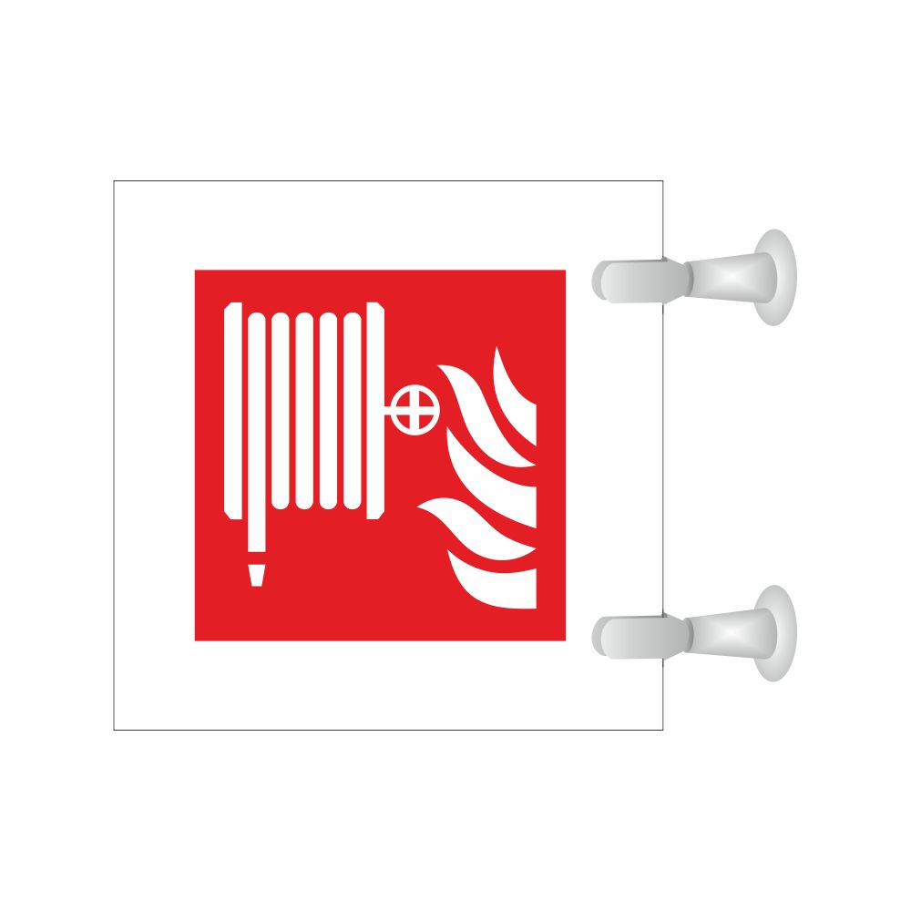 Cartello serie Plexline Bifacciale, in plexiglass trasparente o satinato, spessore 3 mm, con pittogramma lancia antincendio conforme UNI EN ISO 7010.