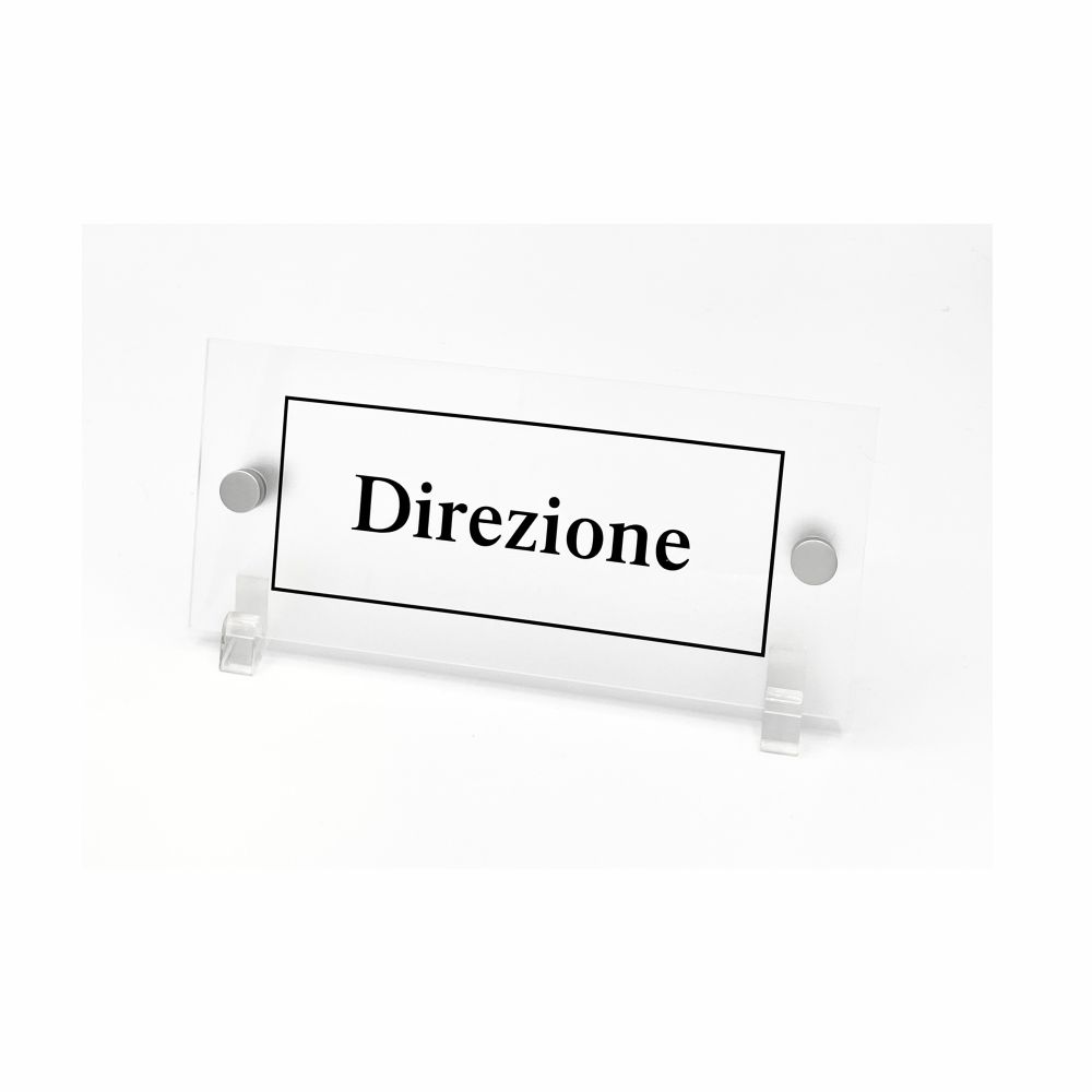 N.B: Le immagini hanno carattere indicativo. Il prodotto è fornito di serie con scritta nera "Direzione" e distanziali a vite in alluminio argento satinato.
