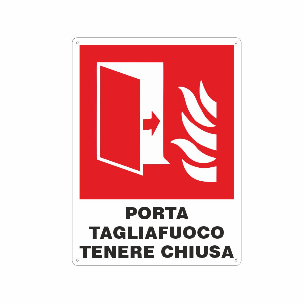 Indicato dal Codice Prevenzione Incendi (aggiornamento 2021) per segnalare le porte tagliafuoco - Paragrafo S.3.5.7 - tabella S.3-4.