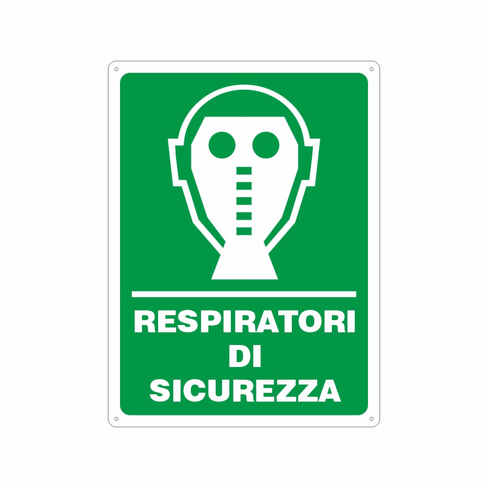 Utilizzo: il segnale si applica in prossimità dei respiratori di sicurezza che sono dispositivi di protezione individuale atti a proteggere le vie respiratorie dall'inalazione di fumi, polveri, gas, altre sostanze nocive o irritanti. Si utilizzano in tutte le attività dove viene rilevato un rischio per le vie respiratorie al fine di evitare infortuni o malattie professionali.
