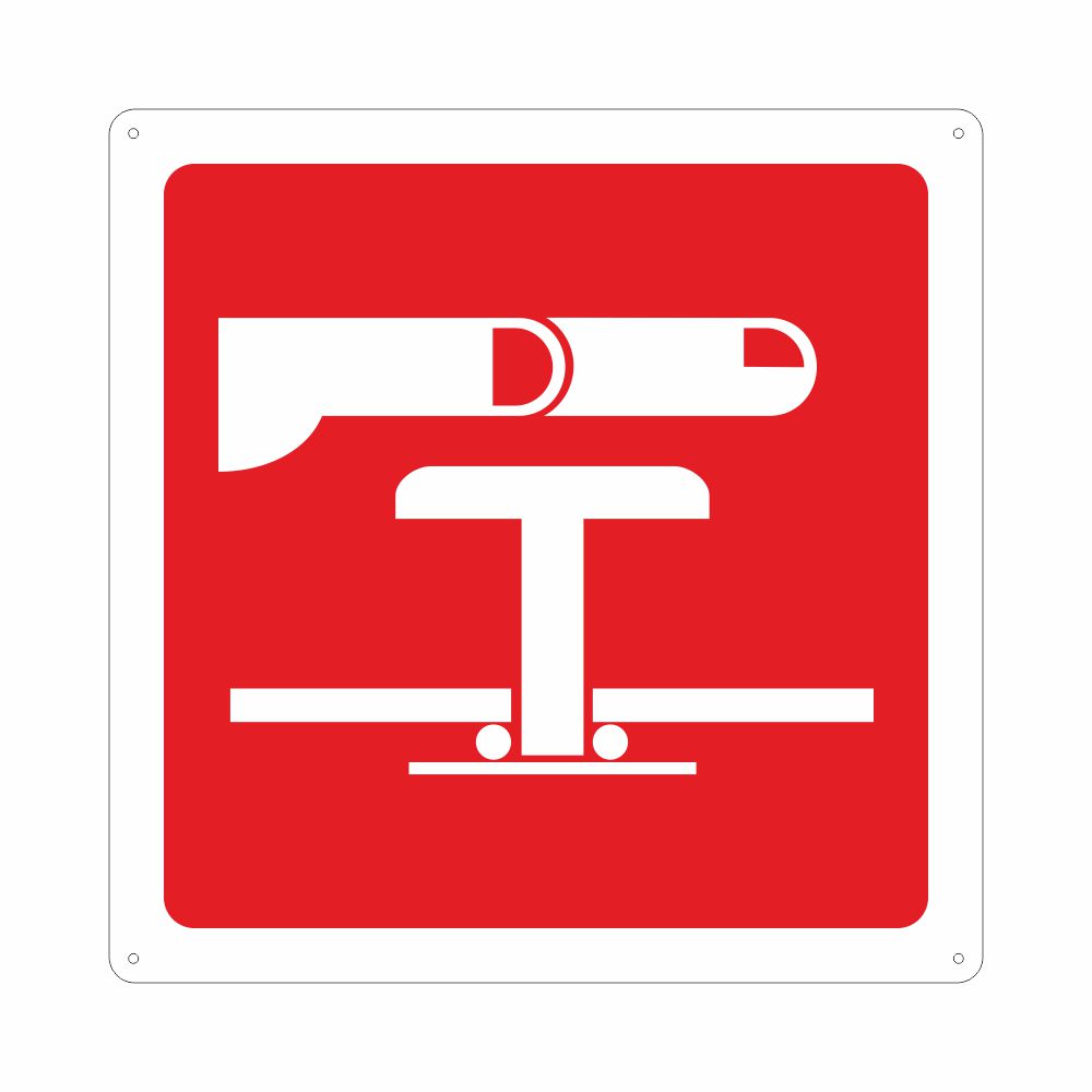 Cartello in alluminio preverniciato bianco (formato F) o rosso (formato B), spessore 0,5 mm, stampa serigrafica pittogramma e scritta Arresto d'emergenza. Conforme D.Lgs. 81-08, UNI 7543.