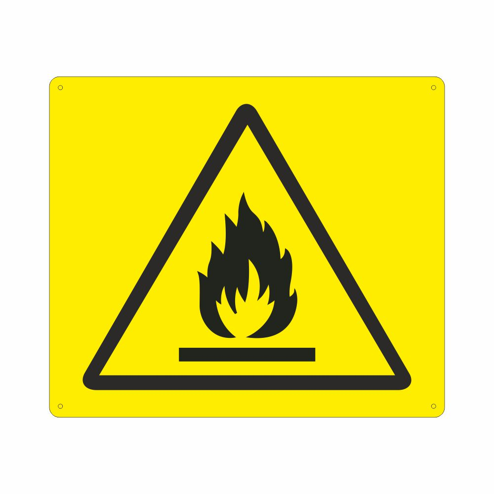 Formati A, B - Cartello in alluminio preverniciato giallo spessore 0,5 mm, stampa serigrafica pittogramma e scritta Pericolo materiali infiammabili, con fori e angoli arrotondati. Formato C - Cartello in alluminio preverniciato giallo spessore 0,5 mm, stampa serigrafica pittogramma e scritta Infiammabili, senza fori con angoli al vivo. Formati Adesivi A e B - Adesivo in pvc giallo, stampa serigrafica o digitale, pittogramma e scritta Infiammabili, senza fori con angoli al vivo. Le misure delle varianti sono espresse in mm. Conforme D.Lgs. 81-08 e UNI 7543; UNI EN ISO 7010 (Variante B e adesivi) . Scarica qui la scheda di prodotto per la segnaletica in alluminio