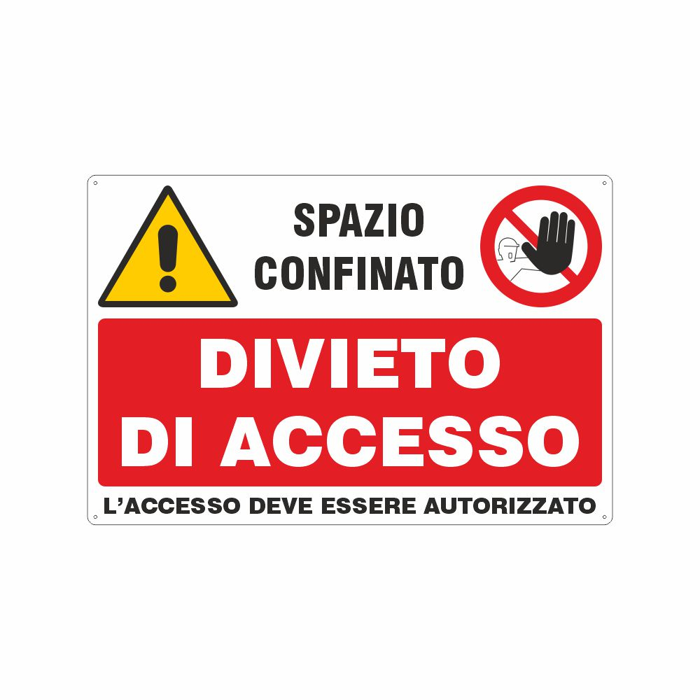 Cartello in alluminio preverniciato bianco spessore 0,5 mm, stampa serigrafica pittogramma e scritta Vietato l'accesso a chi non è autorizzato, con fori e angoli arrotondati, imballo singolo. Conforme D.Lgs. 81-08 e UNI 7543. La dimensione del formato è espressa in mm. Scarica qui la scheda di prodotto