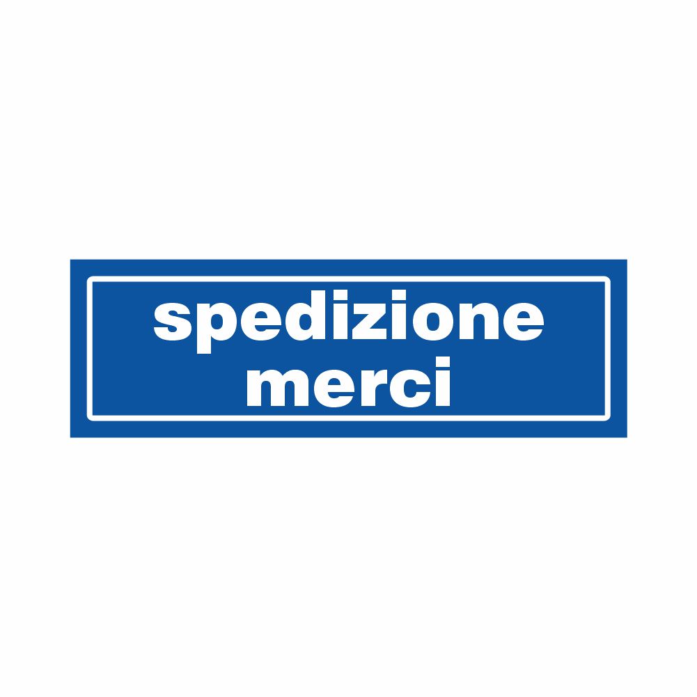 Cartello in alluminio preverniciato blu spessore 0,5 mm, stampa serigrafica scritta Spedizioni Merci. Dimensione 250x80 mm. in offerta fino per fine serie Conforme D.Lgs. 81-08 e UNI 7543.