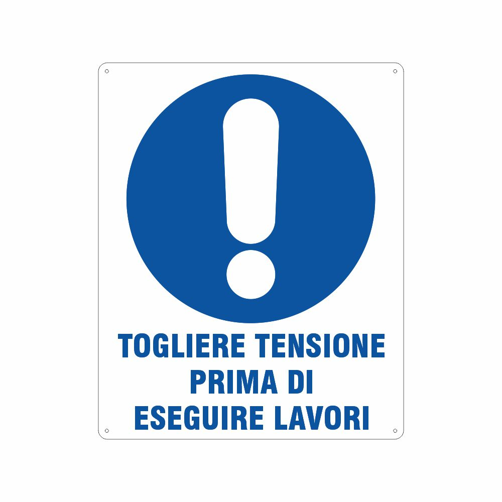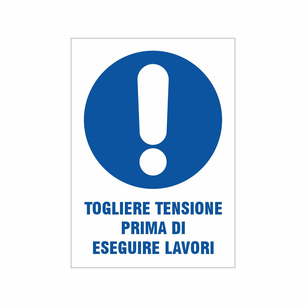 Utilizzo: questo cartello si applica in prossimità di attrezzature, macchinari, quadri elettrici per informare sull'obbligo di togliere tensione prima di eseguire lavori al fine di evitare incidenti o infortuni dovuti ad uno shock elettrico.