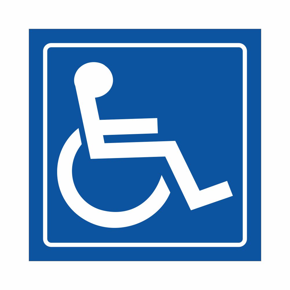 Cartello in alluminio preverniciato blu spessore 0,5 mm, stampa serigrafica simbolo Toilette disabili. Conforme D.Lgs. 81-08 e UNI 7543.