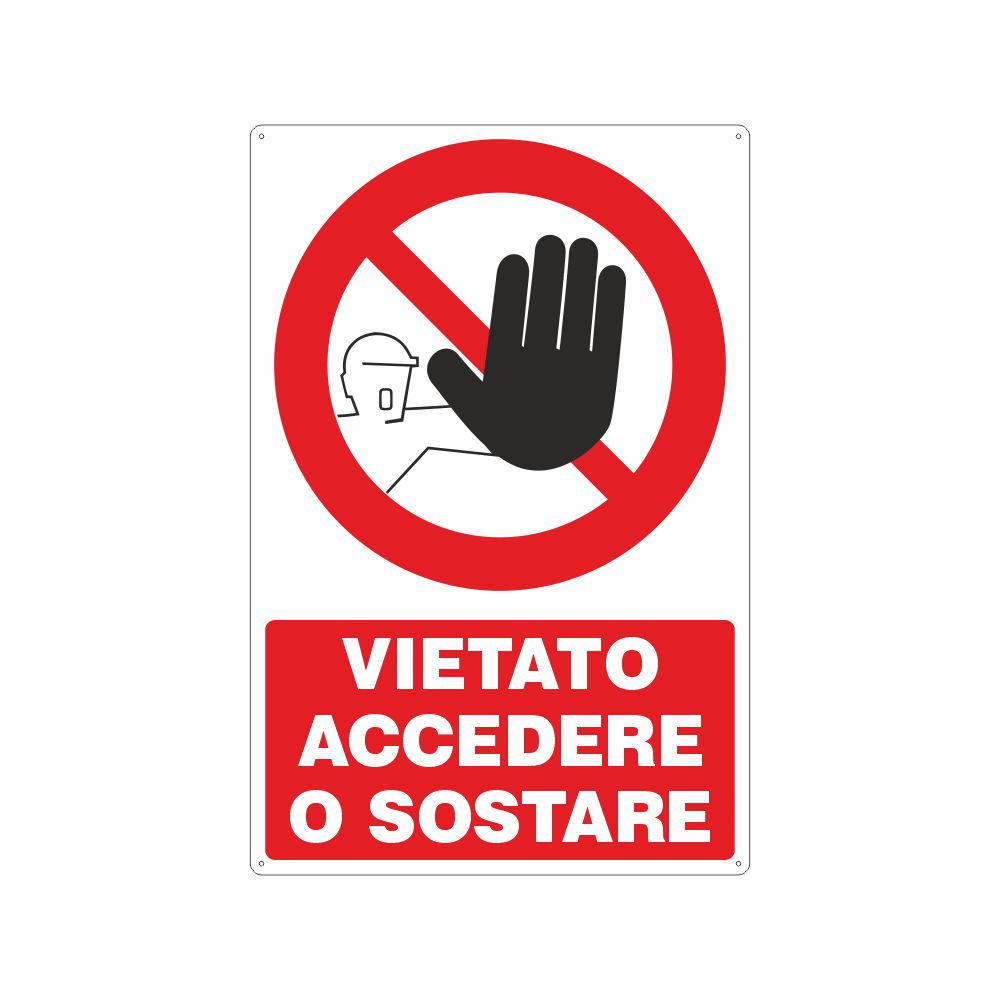 Cartello Vietato l'accesso in 4 lingue Cartello in alluminio preverniciato bianco spessore 0,5 mm Pittogramma e scritta Vietato l'accesso in italiano, inglese, francese e tedesco Stampa durevole e resistente. Angoli arrotondati Imballo in nylon Disponibile in due formati: A con dimensione 333x125 mm; B con dimensione 333x500 mm Distanza di visibilità: Fomato A 4 metri; Formato B 12 metri Conforme D.Lgs. 81-08, UNI 7543. Utilizzo: questo cartello si applica in prossimità degli accessi ad aree che si vuole abbiano ingresso limitato e in presenza di personale o visitatori stranieri Metodo di adesione consigliato: collante siliconico su muro o su superficie liscia e piana