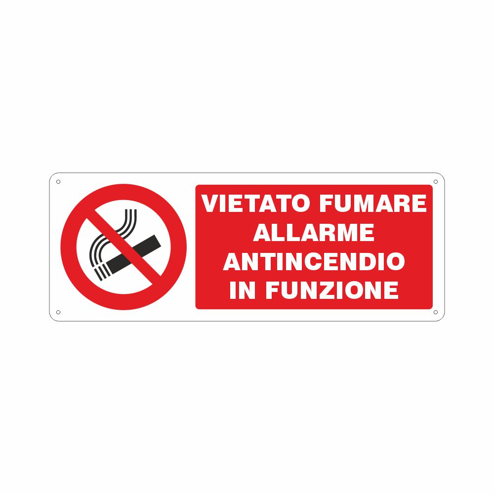Cartello in alluminio preverniciato bianco, spessore 0,5 mm, stampa serigrafica pittogramma e scritta Zona con rivelatori di fumo. Formato 230x310 mm. Conforme D.Lgs. 81-08, UNI 7543.