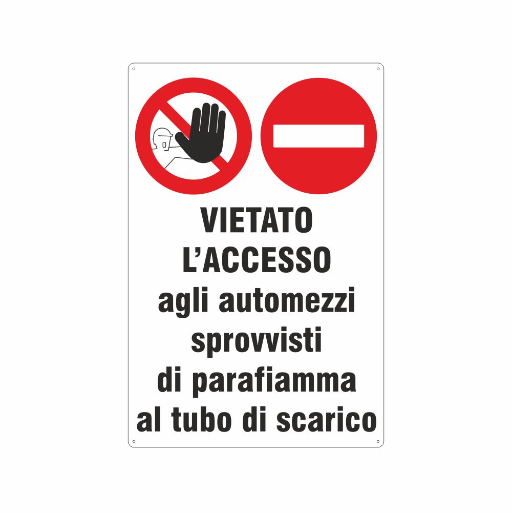 Cartello in alluminio preverniciato bianco spessore 0,5 mm, stampa serigrafica pittogramma e scritta vietato l'accesso agli autoveicoli non autorizzati, con fori e angoli arrotondati, imballo singolo. Formato 333x500 mm. Conforme D.Lgs. 81-08 e UNI 7543.
