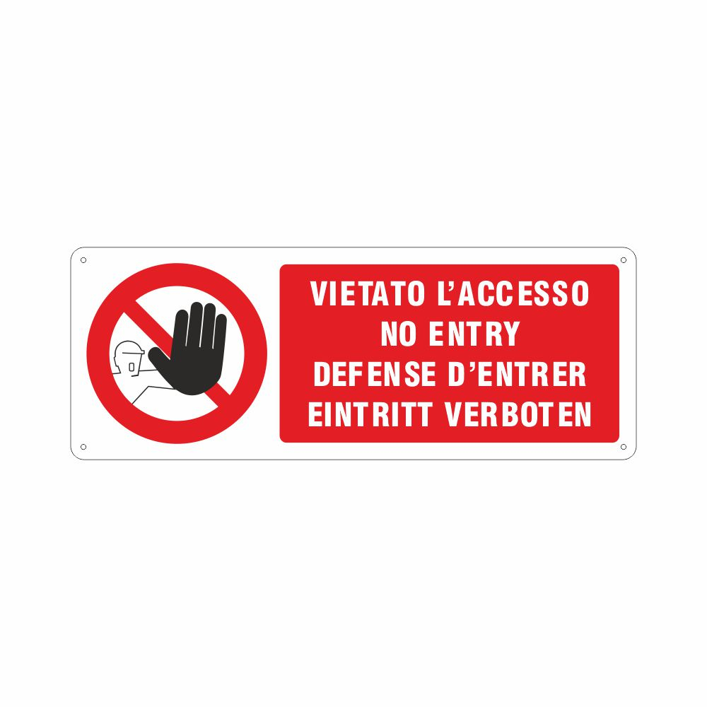 Pittogramma e scritta Vietato l'accesso in italiano, inglese, francese e tedesco