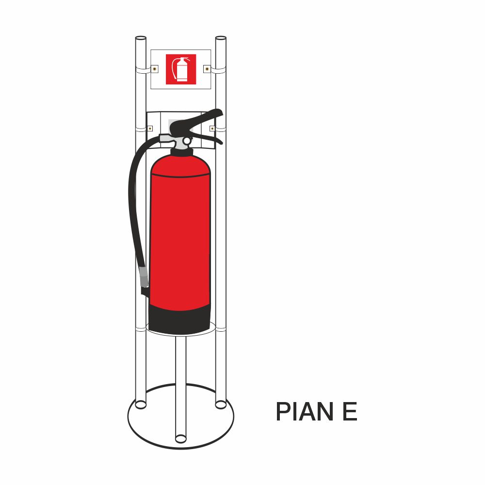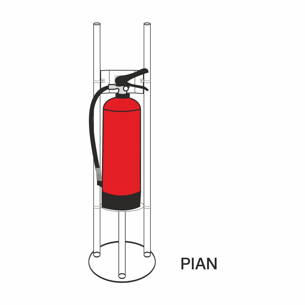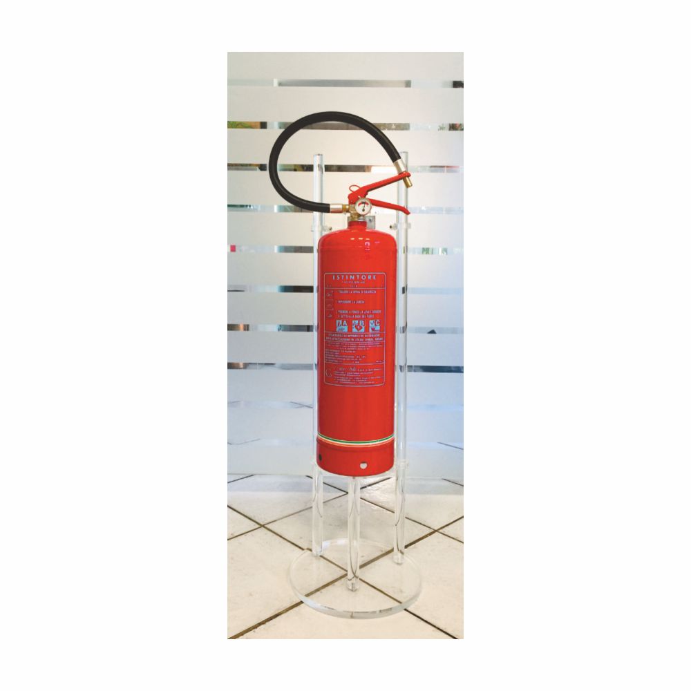 Piantana porta estintore modello Avantgarde, in plexiglass trasparente, altezza totale 1 metro. Adatta a tutti i tipi di estintore portatile. Inserto e base regolabili.