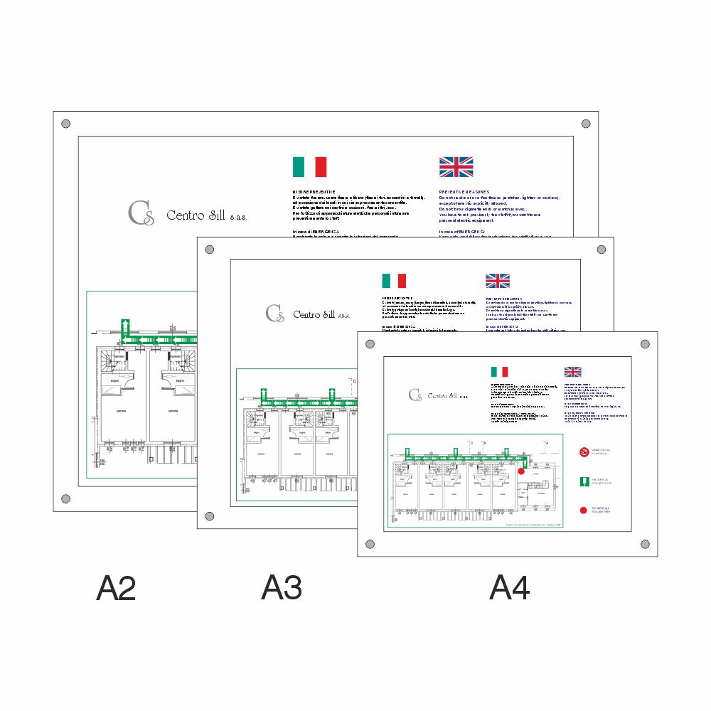 Utile per layout di sicurezza, planimetrie e fogli informativi.