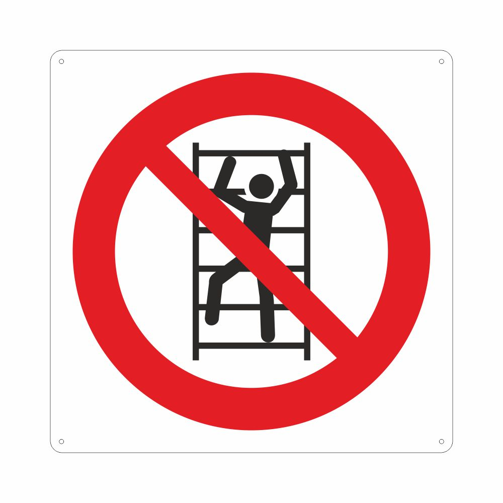 Utilizzo: Applicare questo cartello in prossimità delle scaffalature o impalcature per indicare il divieto di arrampicarsi in quanto si genera una situazione pericolosa a rischio di infortunio.