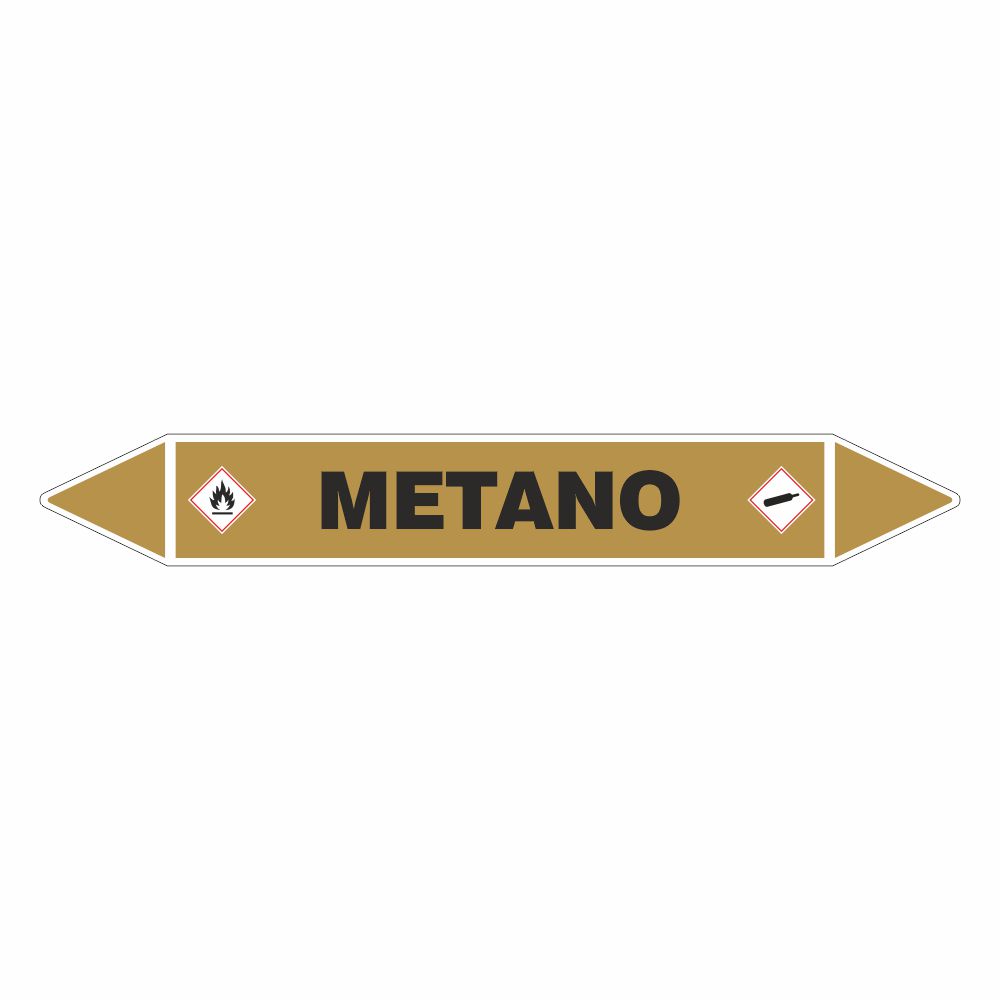 Adesivo per tubazioni con fondo bianco stampa digitale scritta METANO.