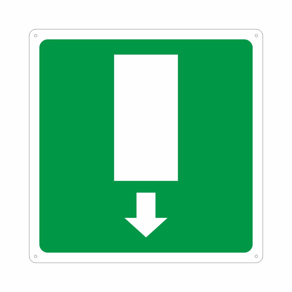 Cartello in alluminio preverniciato bianco, spessore 0,5 mm, percorso di emergenza in basso. Il formato delle varianti è espresso in mm. Conforme D.Lgs. 81-08, UNI 7543, UNI EN ISO 7010.