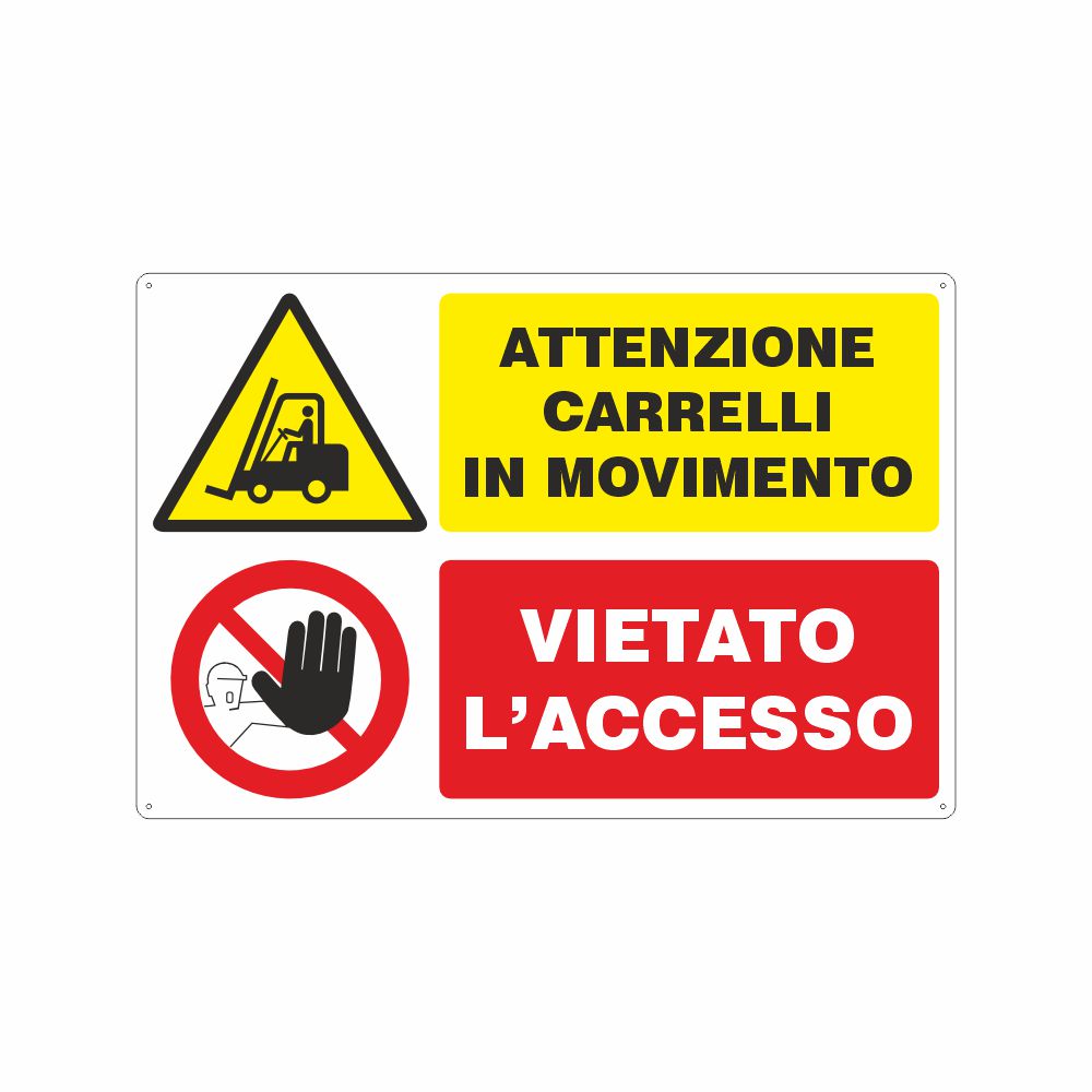Cartello con simbolo pericolo carrelli in movimento