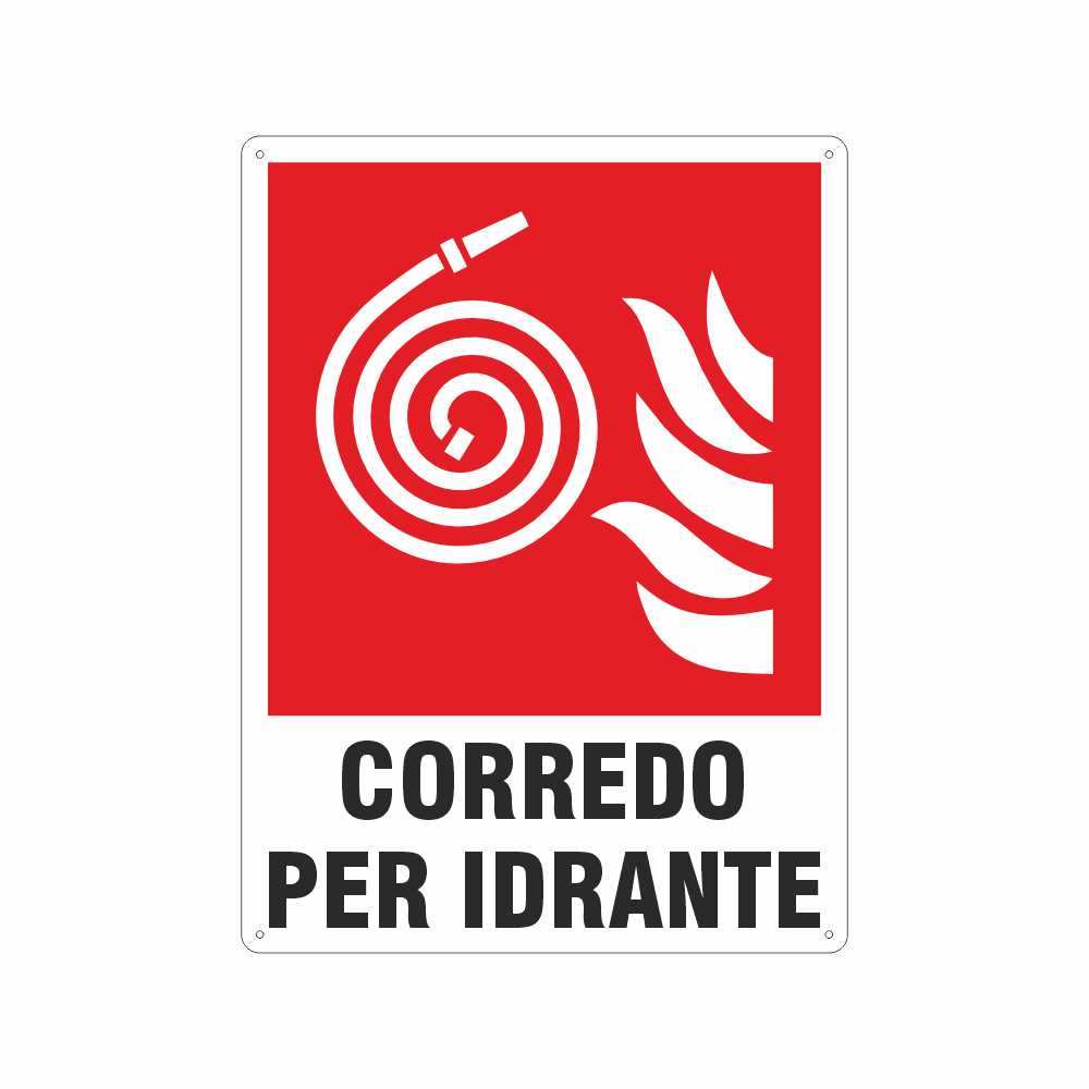 Cartello in alluminio preverniciato bianco spessore 0,5 mm, stampa serigrafica pittogramma e scritta lancia antincendio conforme UNI EN ISO 7010. Conforme D.Lgs. 81-08, UNI 7543, UNI EN ISO 7010.