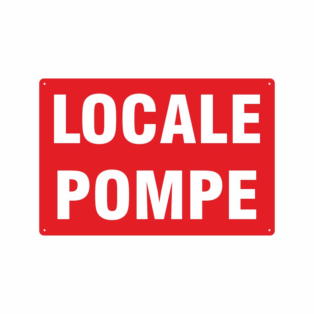 Cartello in alluminio preverniciato rosso spessore 0,5 mm, stampa serigrafica scritta Locale Pompe Antincendio. Formato 300x200 mm. Conforme D.Lgs. 81-08, UNI 7543.