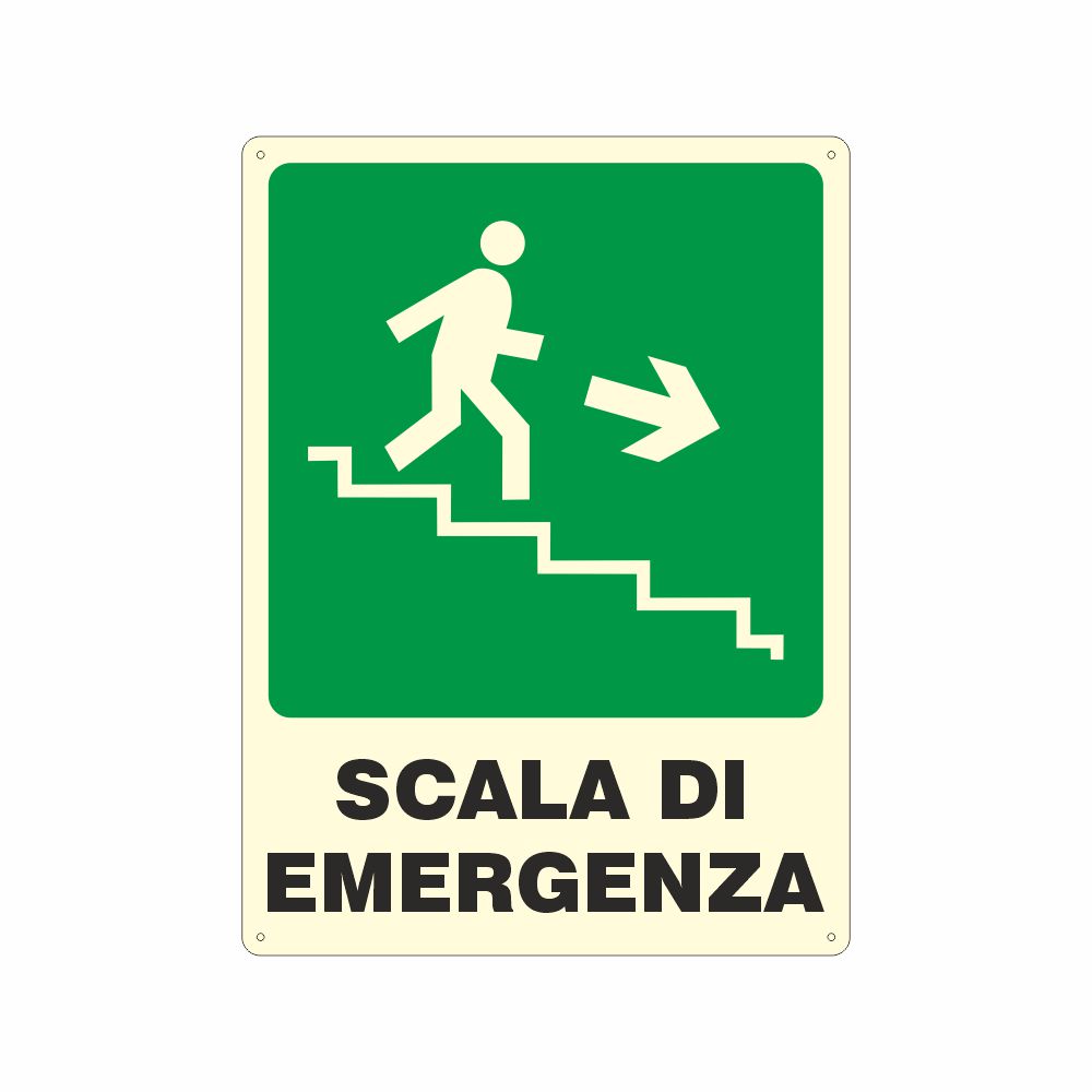stampa serigrafica pittogramma e scritta Scala di emergenza in basso a destra con laminazione luminescente.