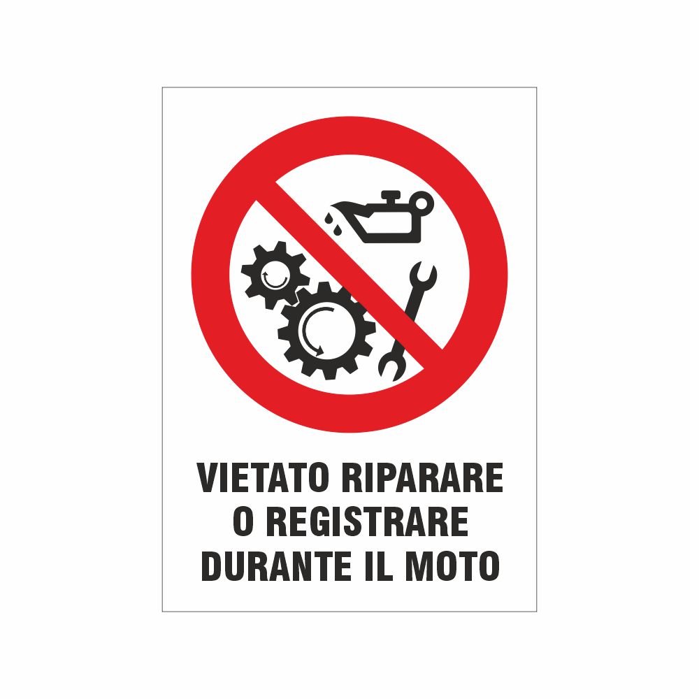 Cartello Vietato riparare o registrare durante il moto