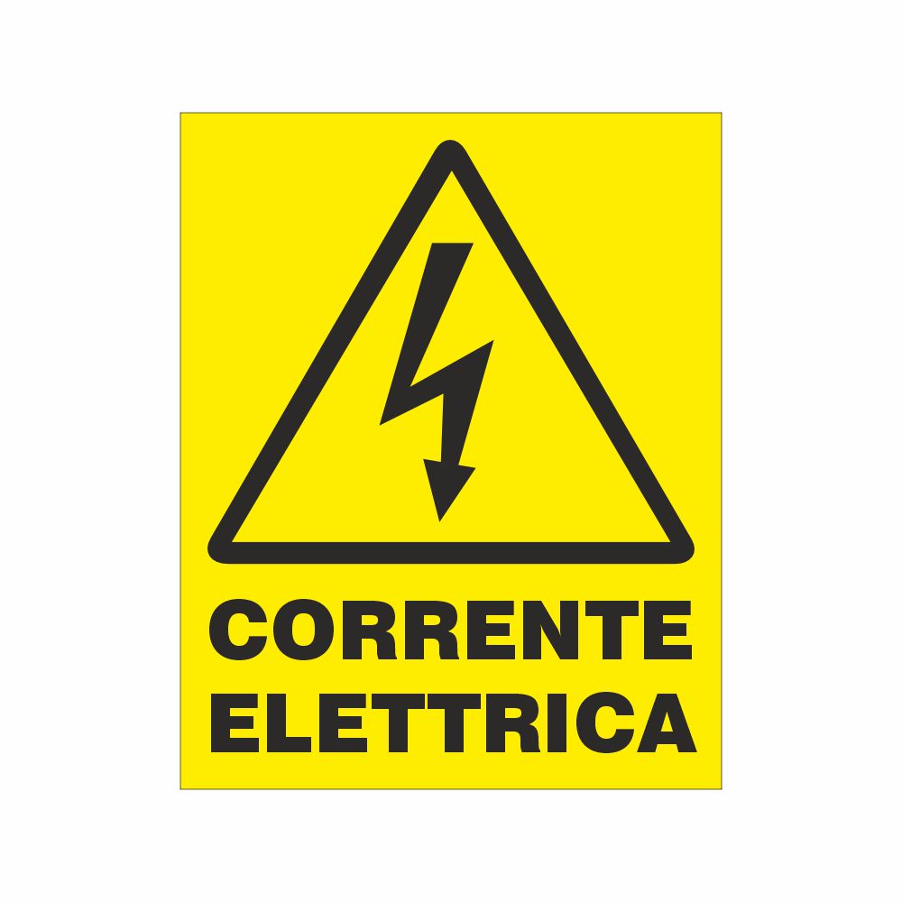 Cartello in alluminio preverniciato giallo spessore 0,5 mm, stampa serigrafica pittogramma W012 pericolo corrente elettrica, con fori e angoli arrotondati, imballo singolo. Conforme D.Lgs. 81-08 e UNI 7543, UNI EN ISO 7010.