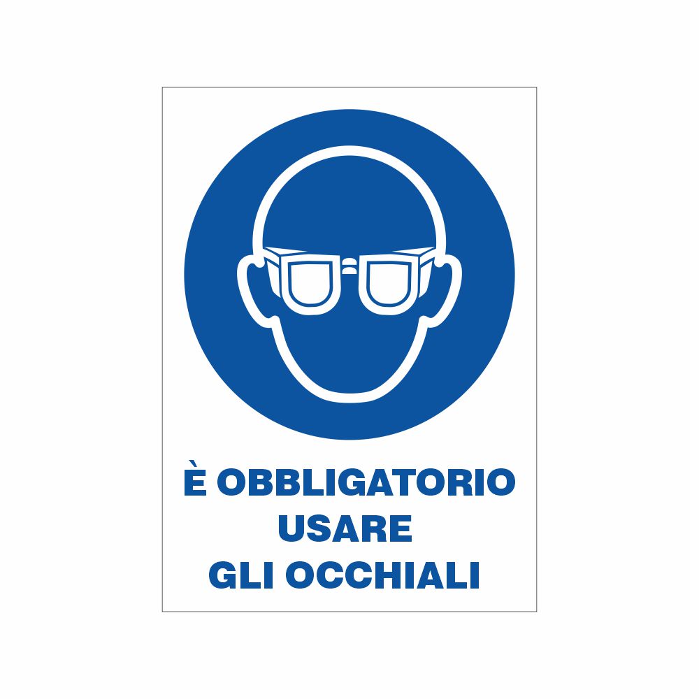 Formati Adesivi A e B - Adesivo in pvc bianco, pittogramma e scritta è obbligatorio usare gli occhiali.