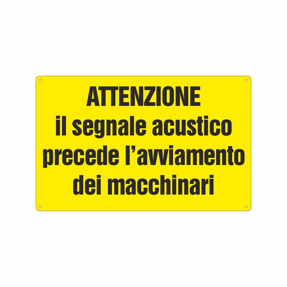 Solo scritta Attenzione il segnale acustico precede l'avviamento dei macchinari