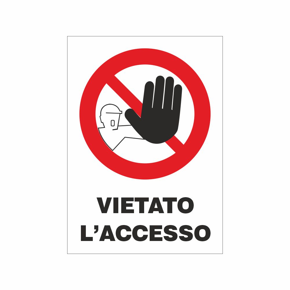 Adesivo in pvc bianco, pittogramma e scritta vietato l'accesso A 50x60 mm; B 125x175 mm Conforme D.Lgs. 81-08 e UNI 7543. La dimensione del fo…